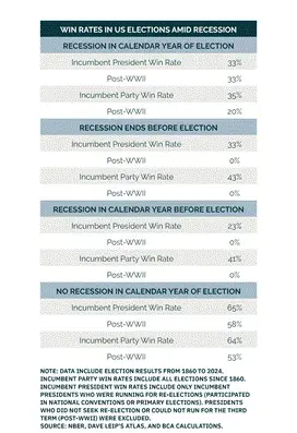 - Triển vọng bầu cử: Nếu nền kinh tế không suy thoái, phe Cộng hòa có cơ hội thắng cử cao nhất trong cuộc bầu cử tổng thống năm 2028.