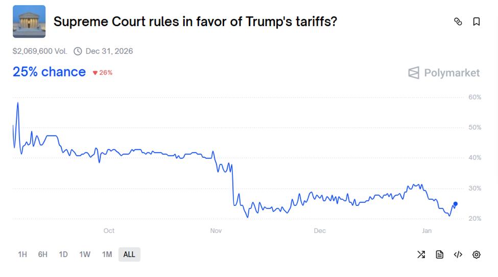 Thêm một yếu tố không chắc chắn nữa, Tòa án Tối cao Hoa Kỳ dự kiến sẽ phán quyết về tính hợp pháp của các mức thuế quan do chính quyền Trump áp đặt theo quyền hạn khẩn cấp của tổng thống. Phán quyết dự kiến được đưa ra hôm nay, thứ Sáu, ngày 9 tháng 1 năm 2026.
