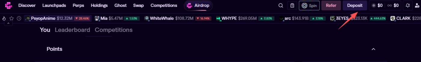 BƯỚC 6. Nhấn "Nạp tiền" ở trên để hỗ trợ nạp tiền bằng tài sản EVM, Solana và Sui . Khuyến nghị chính thức là gửi ETH hoặc USDC.