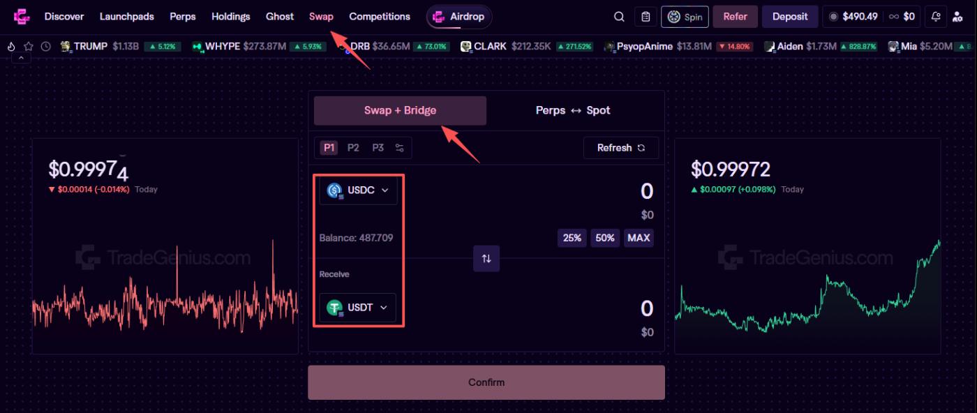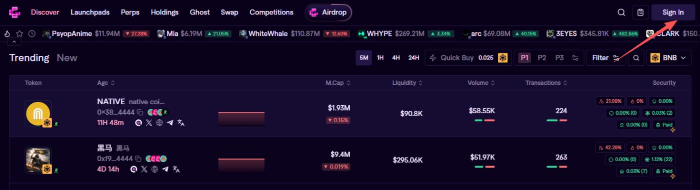 BƯỚC 1. Truy cập trang web chính thức (liên kết: https://www.tradegenius.com/ref/NY8SYH ). Bạn sẽ nhận được 500 điểm GP khi truy cập thông qua liên kết mời này. Nhấn"Bắt đầu giao dịch" và sau đó nhấn"Đăng nhập" ở trên cùng để đăng nhập vào tài khoản của bạn thông qua ví điện tử.