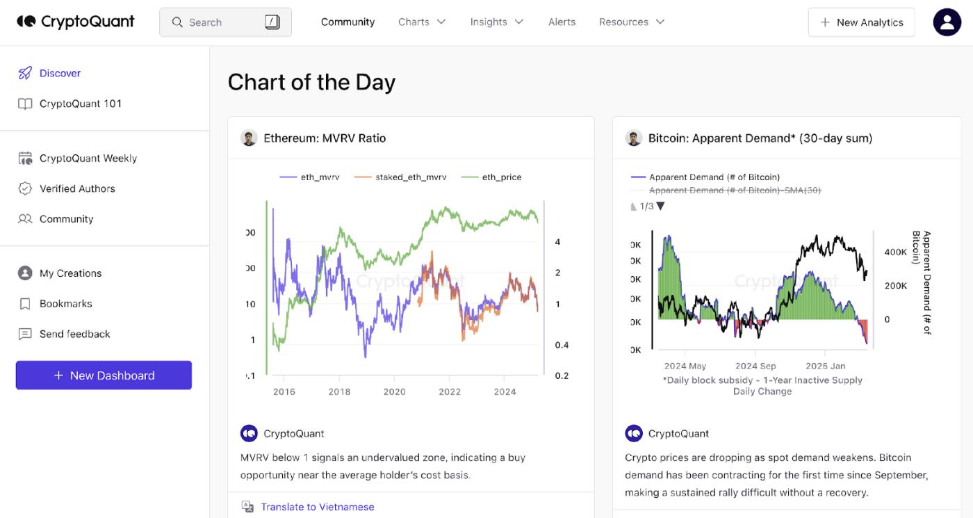 CryptoQuant cung cấp dữ liệu về: