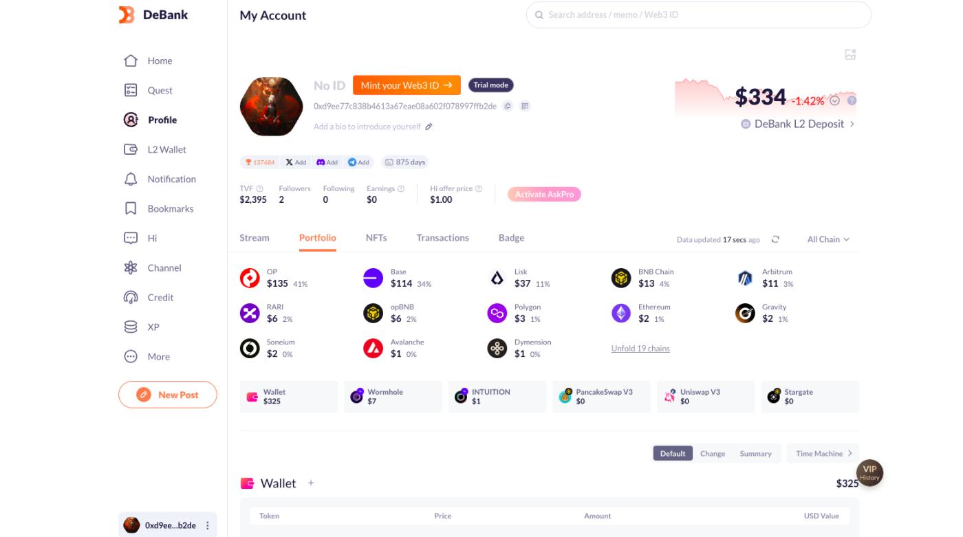 DeBank là một nền tảng chuyên biệt giúp người dùng theo dõi tài sản DeFi, phân tích danh mục đầu tư và giám sát hoạt động của các địa chỉ ví trên nhiều blockchain khác nhau. Nó hỗ trợ hầu hết các giao thức DeFi phổ biến, giúp nhà đầu tư dễ dàng quản lý tài sản và đánh giá hiệu suất đầu tư của mình.