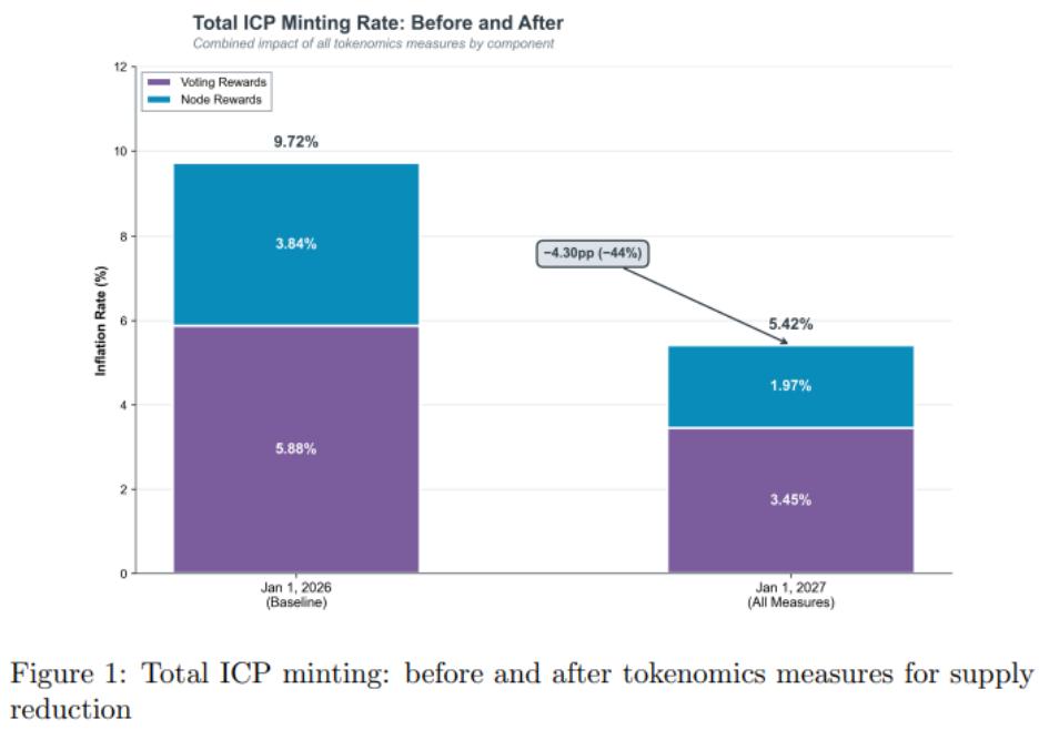 Mục tiêu cốt lõi của kế hoạch này là giảm lượng phát hành mới của token ICP, hay tỷ lệ lạm phát danh nghĩa, xuống 70% hoặc hơn vào năm 2026 thông qua đòn bẩy kép "giảm nguồn cung" và "tăng nhu cầu", từ đó đưa ICP tiến tới giảm phát.