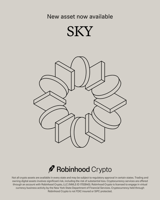$SKY hiện đã có thể giao dịch trên Robinhood Crypto.
