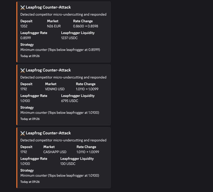 Delegate by @usdctofiat determines whether to undercut liquidity to become more competitive, but never races to the bottom 🐸🐸🐸
