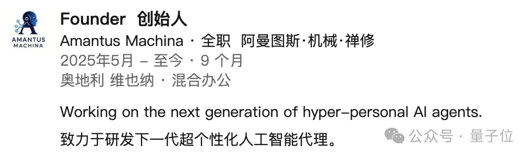Trên LinkedIn, danh tính mới nhất của ông là người sáng lập Amantus Machina, một công ty chuyên phát triển thế hệ tiếp theo của các tác nhân AI siêu cá nhân hóa.