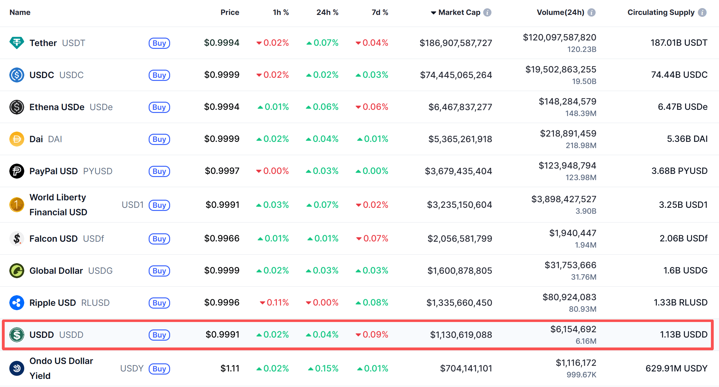 Theo dữ liệu của CoinMarketCap, USDD hiện có hơn 462.000 địa chỉ nắm giữ. Tuy nhiên, khi xem xét kỹ hơn các dự án có giá trị vốn hóa thị trường và khối lượng phát hành cao hơn USDD, ta thấy rằng Ripple USD (RLUSD) có 6.870 địa chỉ nắm giữ, Global Dollar (USDG) có 10.370 địa chỉ nắm giữ và PayPal USD (PYUSD) có 100.300 địa chỉ nắm giữ, tất cả đều thấp hơn con số 462.000 của USDD. Điều này càng cho thấy lợi thế của USDD về số lượng người dùng và hiệu quả phân phối, đây cũng là nguồn dự trữ cốt lõi cho tăng trưởng trong tương lai của USDD.