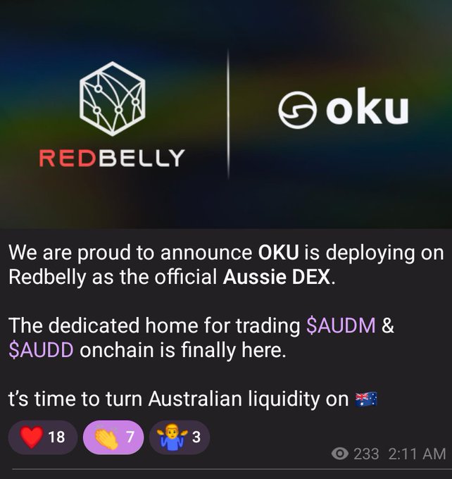 Đây rồi các bạn, @okutrade hiện là sàn giao dịch phi tập trung (Sàn phi tập trung (DEX) chính thức để giao dịch $AUDM và $AUDD - hai stablecoin mới của Úc do @Macropod_AU và @AUDD_digital phát triển trên @RedbellyNetwork - cùng với việc OKU cũng vừa thông báo hỗ trợ giao dịch trực tiếp cho các ngân hàng Hoa Kỳ, tương lai đang ngày càng trở nên dễ tiếp cận hơn. Hãy chú ý theo dõi nhé, tôi có cảm giác sẽ còn nhiều điều thú vị hơn nữa dành cho @RedbellyNetwork trên @okutrade trong thời gian tới.