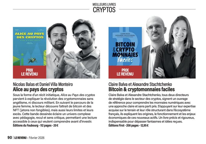 Cuốn sách của chúng tôi "Bitcoin and Cryptocurrencies Made Easy" cùng với @StachAlex đã giành được giải thưởng của @LeRevenuMedia cùng với "Alice in Cryptoland" của @MonteiroVilla 👏🔥 Tạp chí sẽ có mặt tại các sạp báo vào thứ Sáu, ngày 30 tháng 1, và sách của chúng tôi vẫn có sẵn tại đây: amazon.fr/Bitcoin-cryptomonnai...…