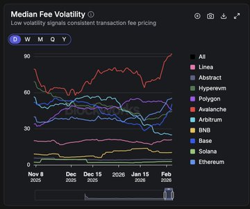 - Fee volatility remained the lowest across all chains, and median fees were the lowest across all major chains at