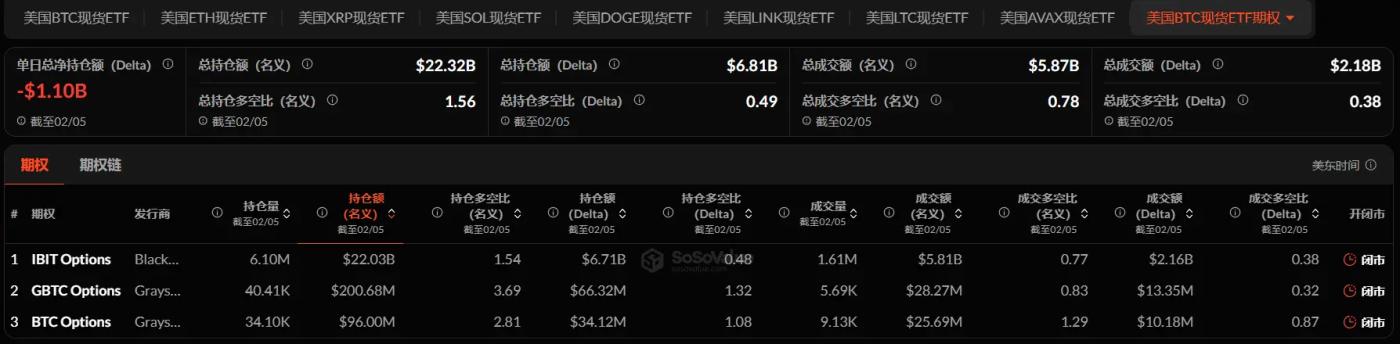 Tính đến ngày 5 tháng 2, tổng vị thế giữ danh nghĩa của các quyền chọn ETF Bitcoin spot tại Mỹ đạt 22,32 tỷ đô la, với tỷ lệ vị thế giữ /tỷ lệ long-short danh nghĩa là 1,56.