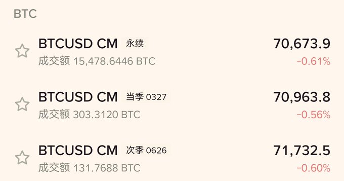 Mặc dù khối lượng giao dịch hợp đồng tương lai trong quý hiện tại và quý lần nhỏ, tôi cho rằng chỉ báo chênh lệch giá vẫn đáng tham khảo(chỉ đối với xu hướng tổng thể, không phải ngắn hạn). Hiện tại, mặc dù chênh lệch giá nhỏ, nhưng vẫn là chênh lệch dương (cao hơn giá spot). Vào cuối năm 2018 và cuối năm 2022, đã có những mức chênh lệch giá âm rất cao (thấp hơn giá spot), kéo dài trong một thời gian cho đến khi thị trường gấu chạm đáy trước khi trở lại mức chênh lệch dương.