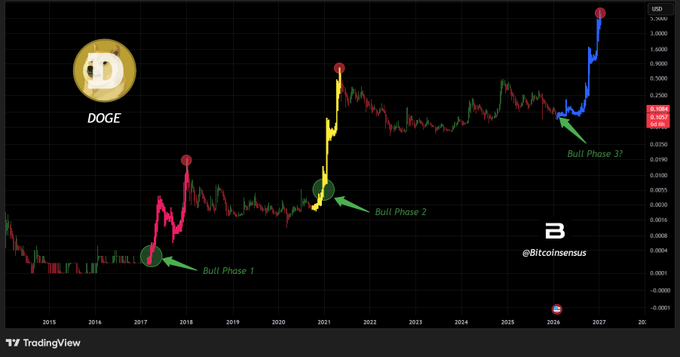 Nếu chu kỳ thị trường này tương tự như các chu kỳ trước, Dogecoin có thể tăng giá lên mức 5 đô la.