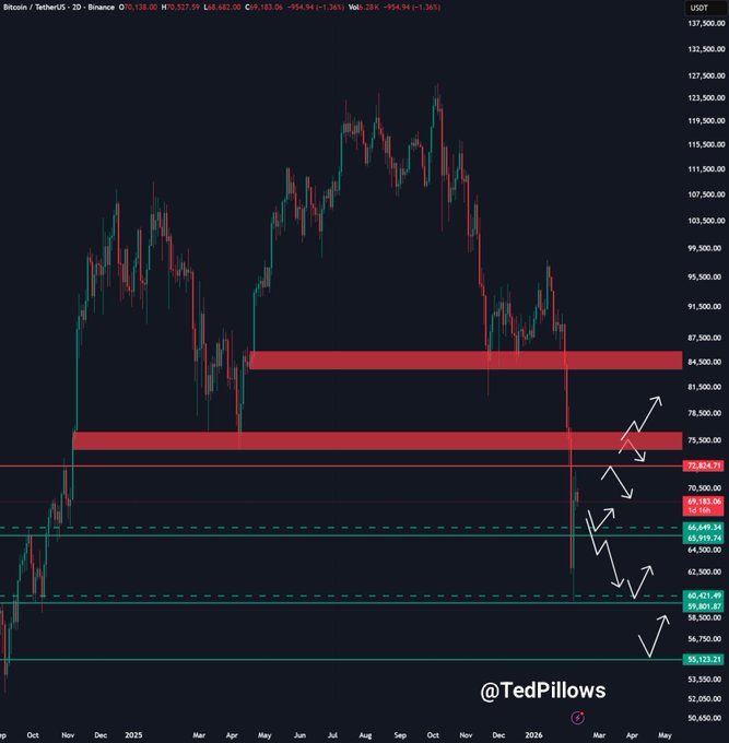 $BTC đã không giữ được mức trên 70.000 đô la. Vùng kháng cự quan trọng tiếp theo đối với Bitcoin là $66,000-$68,000 và nếu BTC giảm xuống dưới mức này, mọi chuyện có thể trở nên tồi tệ.