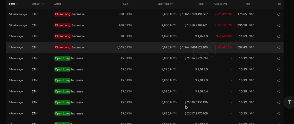 Theo dõi thời gian thực từ nền tảng phân tích Chuỗi Hyperbot, khi thị trường tăng tốc giảm trong giờ qua, Huang Licheng đã cắt lỗ bằng cách giảm vị thế mua ETH của mình xuống 1.725 đơn vị vào khoảng 1 giờ chiều, ghi nhận lỗ vốn khoảng 147.304,16 đô la.