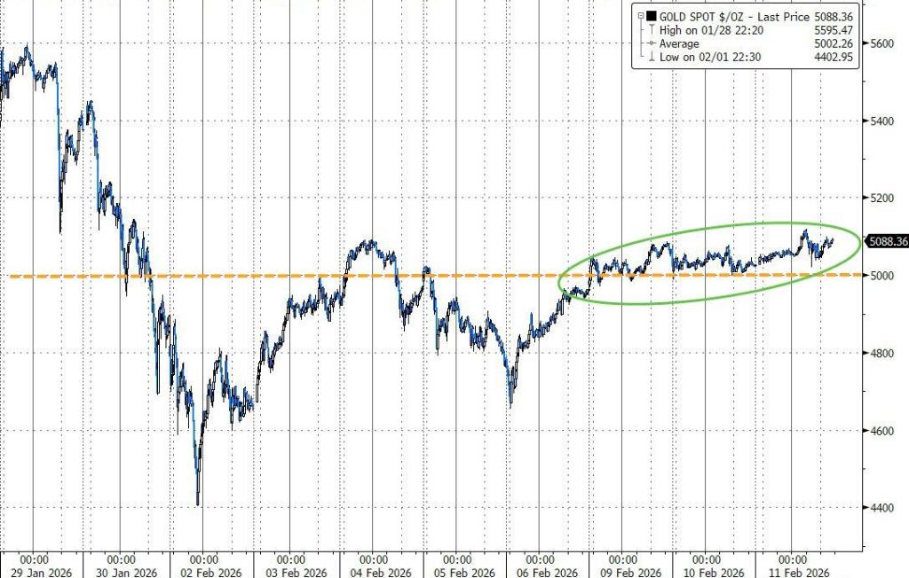 Giá vàng spot tăng 1,3% trong một phiên giao dịch đầy biến động, duy trì ở mức trên 5.080 USD. Tuy nhiên, giá bạc tăng trước khi giảm trở lại, nhưng vẫn tăng hơn 4%.