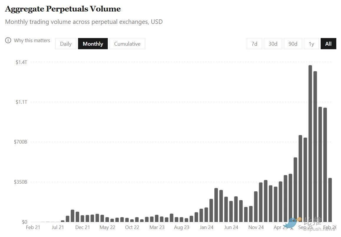 Giao diện thân thiện với người dùng của các thị trường hợp đồng vĩnh cửu khiến chúng trở thành giao diện mặc định, dễ sử dụng để bày tỏ quan điểm trên nhiều thị trường và tài sản toàn cầu. Sự sẵn có rộng rãi của giao dịch phái phái sinh đòn bẩy cao trên tài sản truyền thống và crypto trên một nền tảng duy nhất đã dẫn đến khối lượng giao dịch hợp đồng vĩnh cửu vượt qua khối lượng giao dịch spot sàn giao dịch phi tập trung . Từ 44% vào tháng 2 năm 2025, chiếm tỷ lệ giao dịch của hợp đồng vĩnh cửu đã tăng vọt lên khoảng 75% hiện nay (so với khối lượng giao dịch spot).