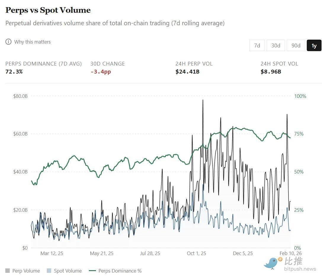 Tất cả tăng trưởng này diễn ra trong bối cảnh tổng giá trị vốn hóa thị trường thị trường crypto giảm gần 40% từ ngày 1 tháng 8 năm 2025 đến ngày 9 tháng 2 năm 2026. Hoạt động này cho thấy các nhà giao dịch ngày càng có xu hướng giao dịch phái sinh, phòng ngừa rủi ro và định vị ngắn hạn, đặc biệt khi Thị trường Spot trở nên biến động mạnh và bearish.