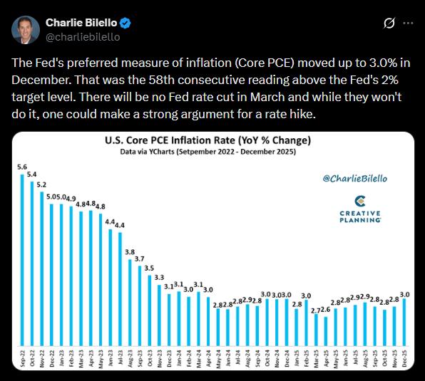 Số liệu PCE tuần trước cho thấy lạm phát tăng 2.7% so với cùng kỳ năm trước, và lạm phát lõi ở mức 3.0%, tức áp lực giá vẫn dai dẳng.