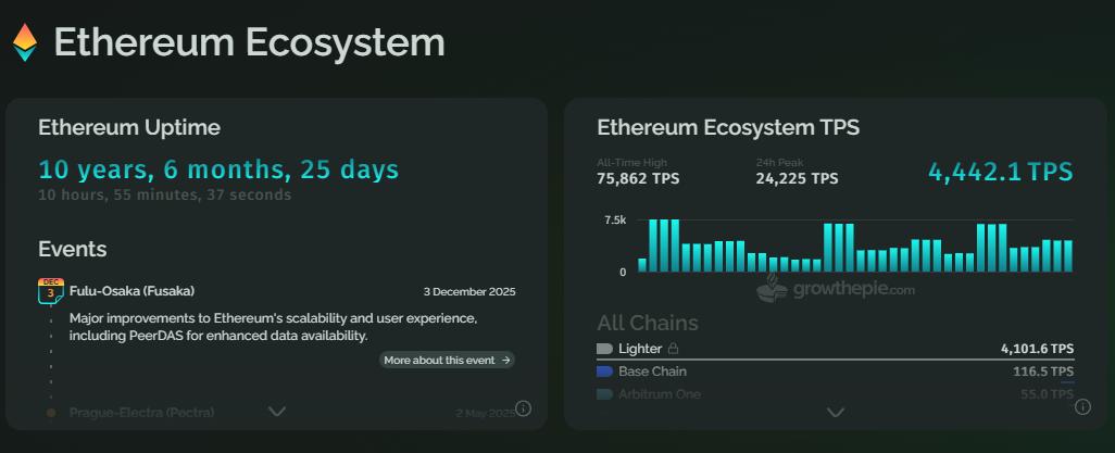 Mặc dù giá đang chịu áp lực, các yếu tố kỹ thuật cơ bản của Ethereum đã cho thấy khả năng phục hồi đáng kể, thậm chí còn thể hiện hiện tượng hiếm gặp "sự phân kỳ giữa giá và khối lượng giao dịch". Gần đây, TPS (giao dịch mỗi giây) của mạng Ethereum đã đạt Cao nhất mọi thời đại (ATH) 75.862, vượt xa mức đỉnh trước đó là 58.786.