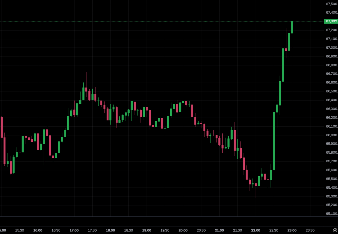 Thị trường crypto đã phản ứng mạnh mẽ trước tin tức này. Bitcoin tăng, vượt qua mốc 67.000 đô la; Ethereum cũng mạnh lên, vượt qua mốc 1.980 đô la.