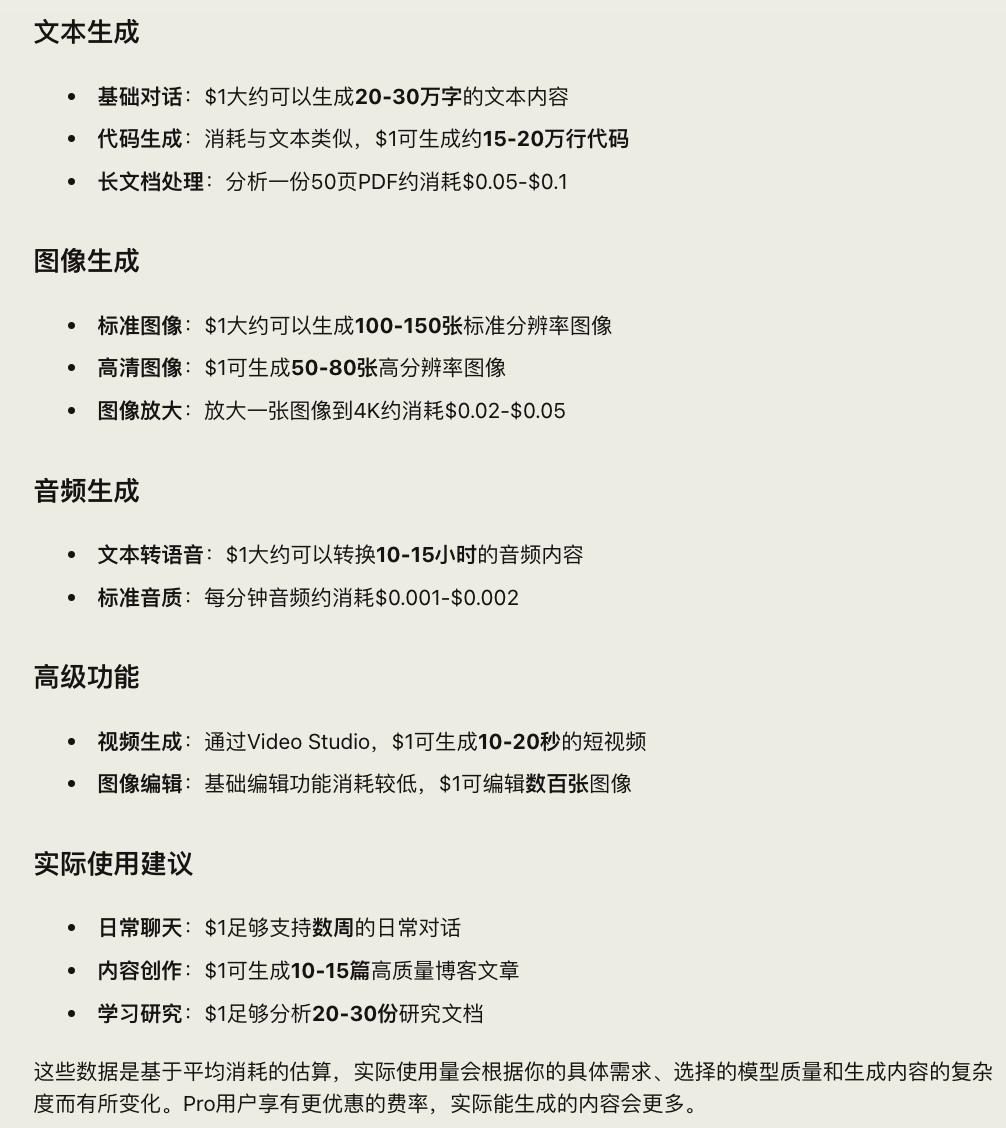 Khái niệm về tín dụng 1 đô la khá trừu tượng. Trong hệ sinh thái Venice, nó không phải là một số lượng token cố định, mà là tài nguyên suy luận trị giá 1 đô la có thể được sử dụng. Các mô hình đắt tiền hơn tạo ra ít nội dung hơn, trong khi các mô hình rẻ hơn tạo ra nhiều nội dung hơn. Cơ chế định giá trừu tượng này khiến DIEM trở thành một loại "giấy chứng nhận thị phần tỷ lệ băm ". Tôi đã nhờ AI của Venice định lượng tín dụng 1 đô la cho tôi: