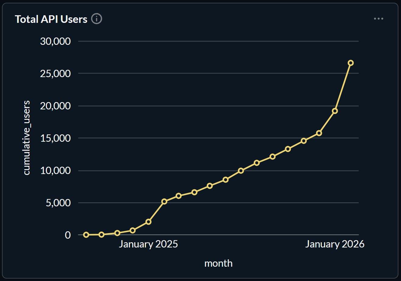 Theo dữ liệu mới nhất do Erik công bố vào ngày 1 tháng 3, số lượng người dùng API của Venice đã tăng trưởng nhanh chóng kể từ đầu năm 2026 và hiện đã vượt quá 25.000 người dùng.