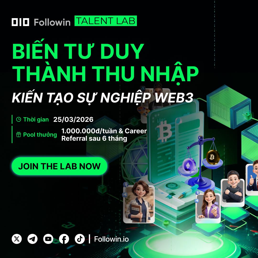 Không phải vì họ thiếu năng lực, mà đơn giản là thiếu một môi trường để bắt đầu và phát triển nghiêm túc. Followin Talent Lab được tạo ra từ chính nhu cầu đó - một bệ phóng giúp bạn biến góc nhìn Web3 của mình thành nội dung, kết nối với cộng đồng và bắt đầu xây dựng vị trí của mình trong ngành.