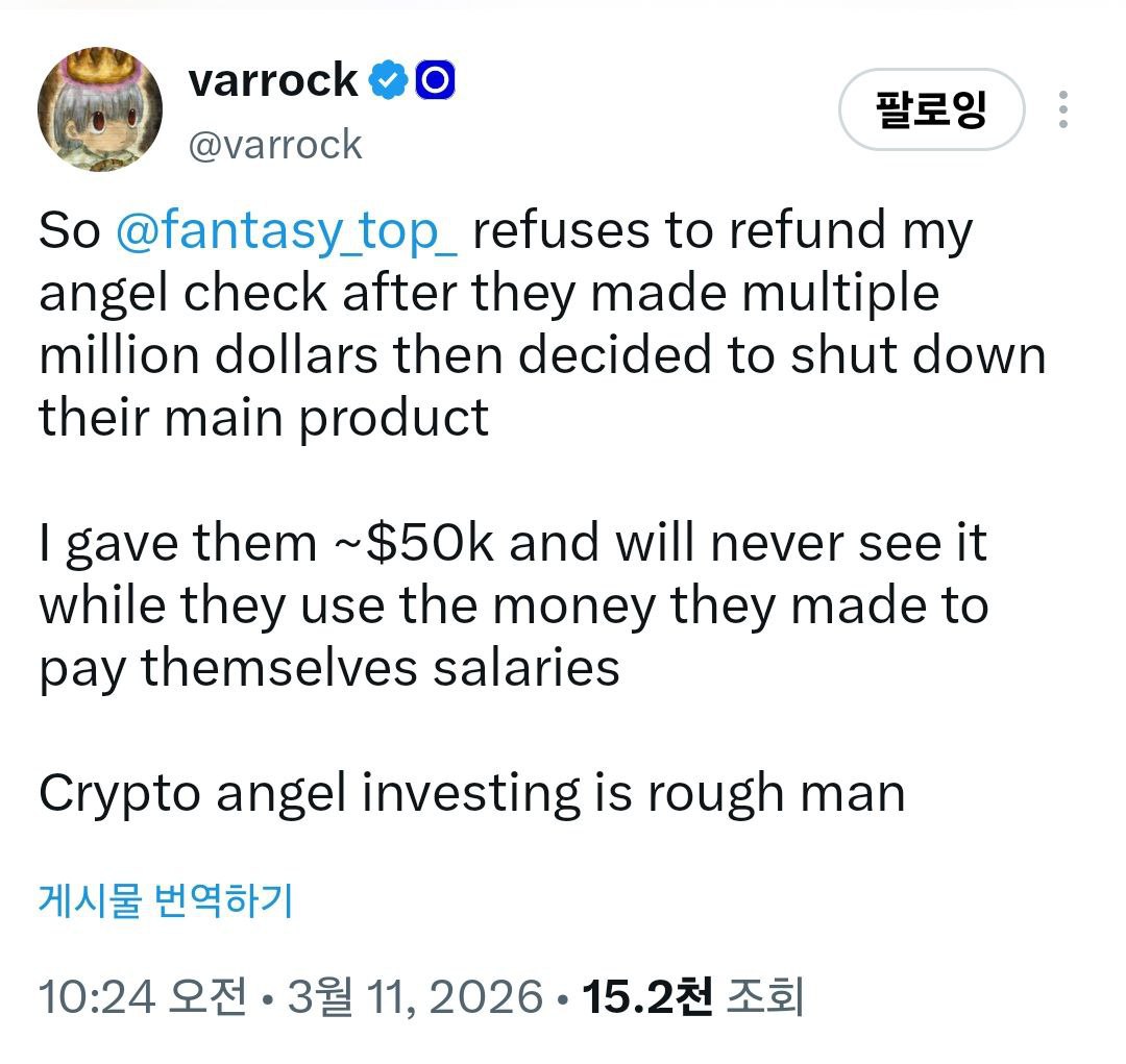 🟢 Fantasy.top Tin tức gần đây Trong trường hợp trò chơi thẻ bài TCG dựa trên người có ảnh hưởng trong lĩnh vực tiền điện tử Fantasy.top, ban đầu được phát hành trên Blast và hiện đang được Base cung cấp dịch vụ, họ đột nhiên tuyên bố sẽ không phát hành token nếu không có PMF (Protection of Marketplace), điều này thực chất làm trì hoãn việc ra mắt hoặc thậm chí đóng cửa doanh nghiệp. Tuy nhiên, có vẻ như họ đang từ chối hoàn trả tiền cho các nhà đầu tư ban đầu thông qua hình thức đầu tư thiên thần và đang lãng phí khoản đầu tư của họ... x.com/varrock/status/203154170...
