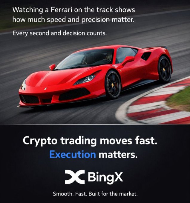 Chứng kiến chiếc Ferrari xé toạc đường đua khiến tôi nhớ rằng: trong đua xe, tốc độ và thời điểm hoàn hảo là tất cả, chỉ một sai lầm trong tích tắc cũng có thể thay đổi cục diện cuộc đua. Thị trường tiền điện tử cũng tương tự. Xác định đúng điểm vào/ra đòi hỏi sự tập trung cao độ và khả năng thực hiện nhanh như chớp. Thị trường trên BingX gần đây biến động cực kỳ nhanh chóng. #FerrarixBingX BingX #Bitcoin BTC