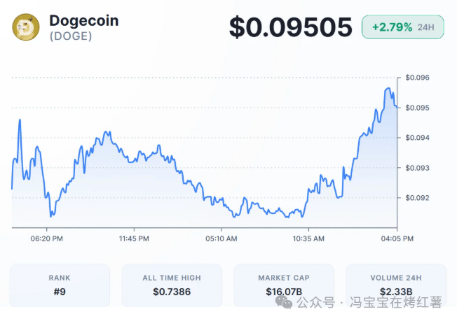 Tính đến thời điểm viết bài, Dogecoin đang giao dịch quanh mức 0,09505, tăng 2,79% trong 24 giờ qua , cho thấy đà kỳ vọng tăng giá mạnh.