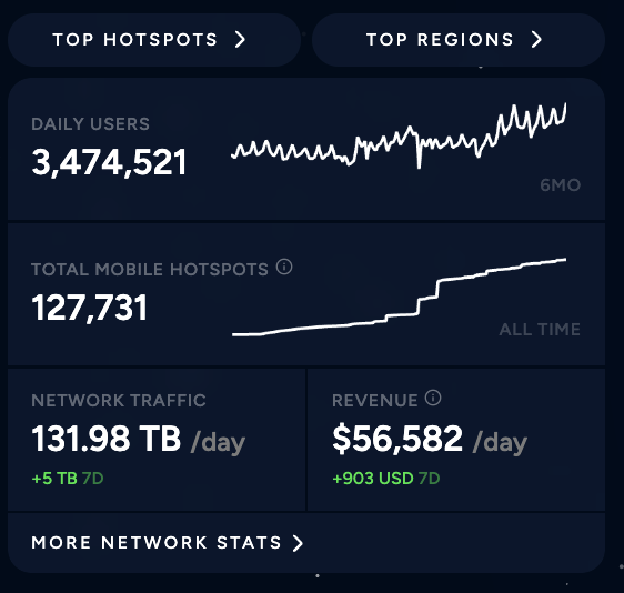 New ATH in daily users and total mobile hotspots, with millions using the network and over 127K hotspots deployed.