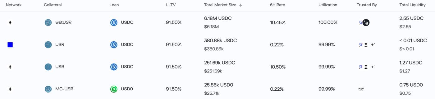 Sau đó, hacker đã sử dụng phương pháp tương tự đúc 30 triệu USR với 100.000 USDC. Khi USR mất giá đáng kể, các nhà đầu cơ chênh lệch giá đã nhanh chóng hành động, và nhiều thị trường vay mượn trên Morpho hỗ trợ USR, wstUSR và các tài sản thế chấp khác gần như cạn kiệt. Lista DAO trên BNB Chain cũng tạm ngừng các yêu cầu vay mới.