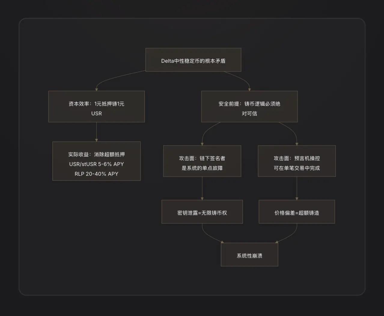 Cuộc tấn công lần không chỉ bộc lộ lỗ hổng trong hợp đồng mà còn cho thấy mâu thuẫn sâu sắc ở cấp độ kiến trúc trong lĩnh vực stablecoin trung tính Delta.