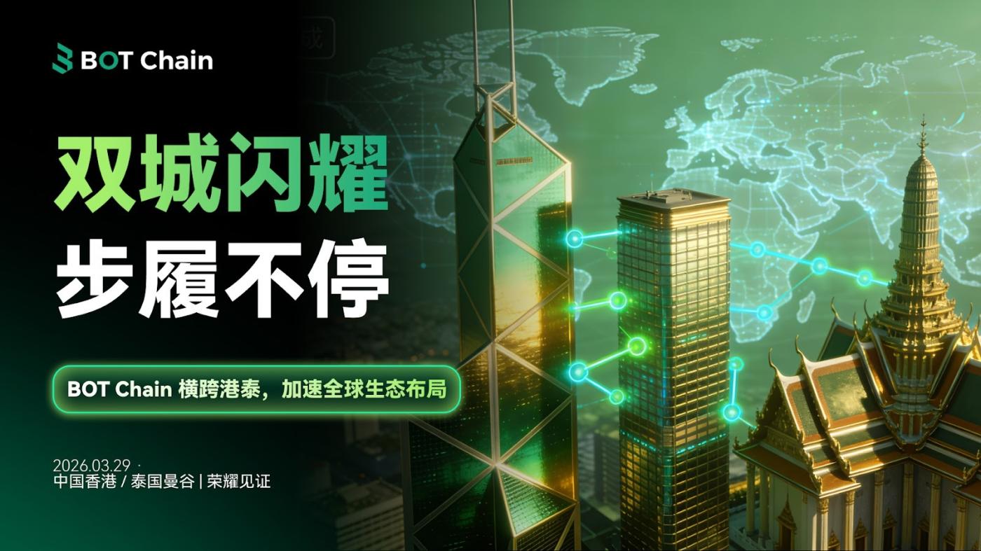 Vào ngày 23 tháng 3 năm 2026, BOT Chain, một mạng lưới thuật toán mô-đun hàng đầu toàn cầu, đã chính thức xác nhận sẽ đồng thời tổ chức hai sự kiện cấp cao trong ngành tại Hồng Kông và Bangkok, Thái Lan vào ngày 29 tháng 3 năm 2026. Điều này đánh dấu lần đầu tiên BOT Chain thực hiện "liên kết hai thành phố" trên toàn cầu, thể hiện sự tiến bộ toàn diện của họ từ câu chuyện công nghệ đến việc triển khai Chuỗi ngành công nghiệp hoàn chỉnh, và từ trọng tâm khu vực đến tầm ảnh hưởng sâu rộng hơn của vốn quốc tế.
