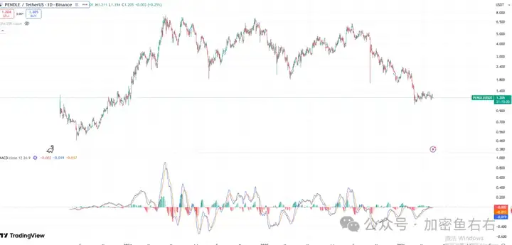 Hiện tại, Pendle đang cho thấy dấu hiệu chạm đáy trên biểu đồ ngày, vì vậy hãy cân nhắc thiết lập vị thế ở mức giá khoảng 1-1.2.