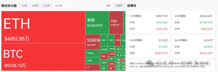 Trong 24 giờ qua, 98.590 người trên toàn thế giới đã bị thanh lý tài sản, với tổng số cháy tài khoản lên tới 326 triệu đô la. Tình hình khó lường ở Trung Đông và giá dầu tăng vọt đang kéo crypto xuống! BTC đã giảm xuống dưới 70.000, nhưng đối diện sự sụt giảm mạnh của thị trường chứng khoán Mỹ đêm qua, Bitcoin đã cho thấy khả năng phục hồi và không theo kịp đà giảm của thị trường này.