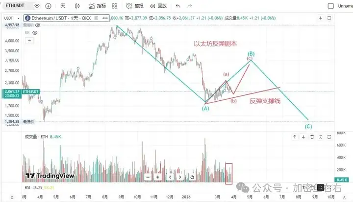 Eth đã giảm mạnh, xuống mức thấp nhất là 2034. Khối lượng giao dịch trong giai đoạn giảm giá thấp hơn đáng kể so với giai đoạn phục hồi vào ngày 23 tháng 3, và gần bằng nhưng thấp hơn khối lượng giao dịch trong giai đoạn giảm giá từ ngày 17 đến ngày 19 tháng 3. Điều này cho thấy, một mặt, áp lực bán tương đối yếu và mức giảm bị hạn chế, mặt khác, nó cho thấy áp lực bán vẫn chưa chấm dứt và vẫn còn khả năng giảm giá thêm.