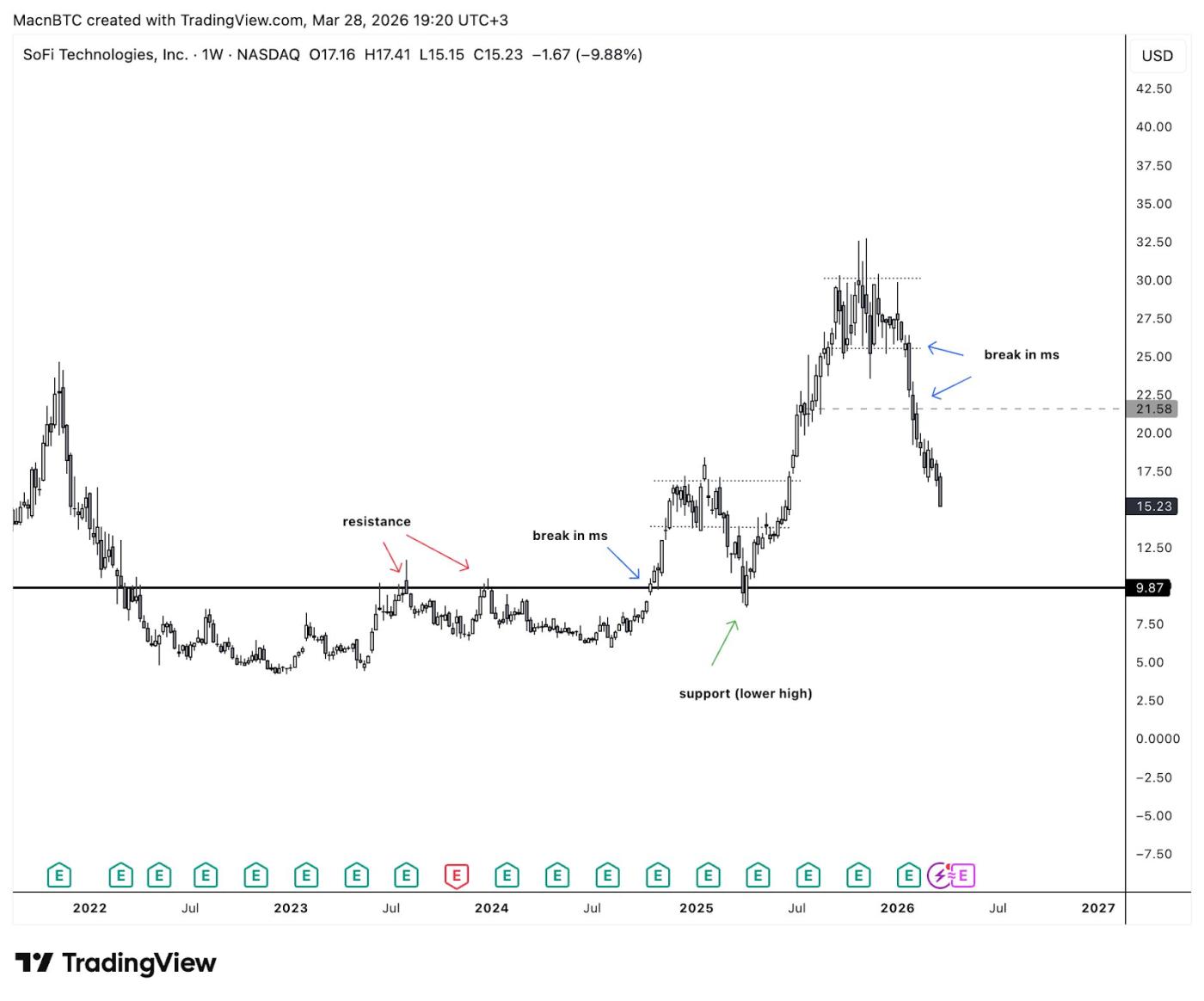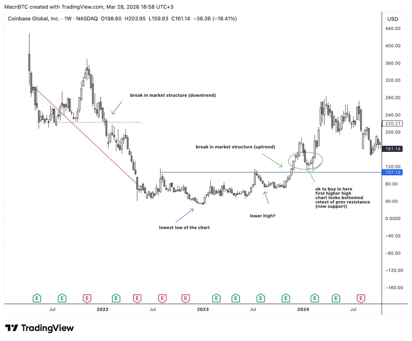 Hãy cùng xem biểu đồ hàng tuần của Coinbase.