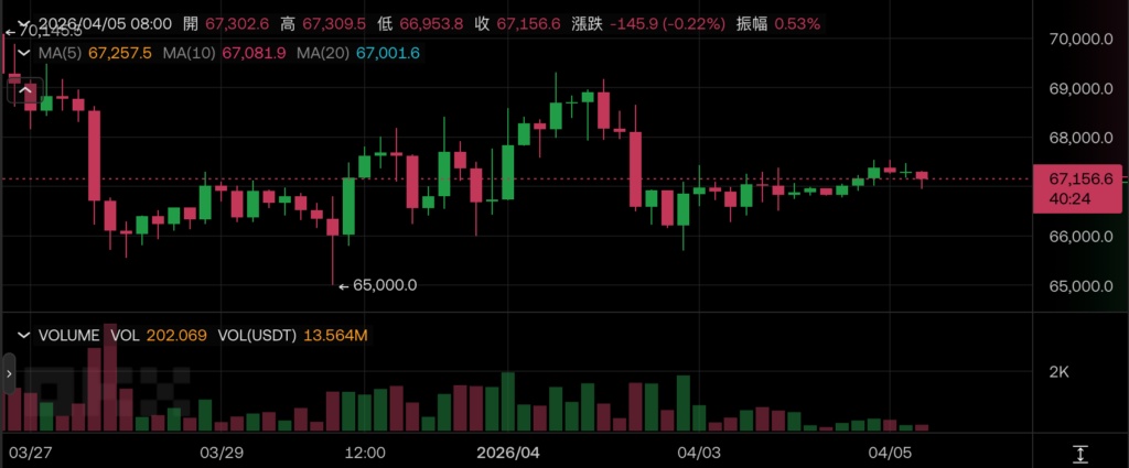 Thị trường crypto hầu như không có biến động nào trong cuối tuần, Bitcoin hiện đang giao dịch ở mức 67.156 đô la, không cho thấy bất kỳ chuyển biến giá rõ rệt nào.
