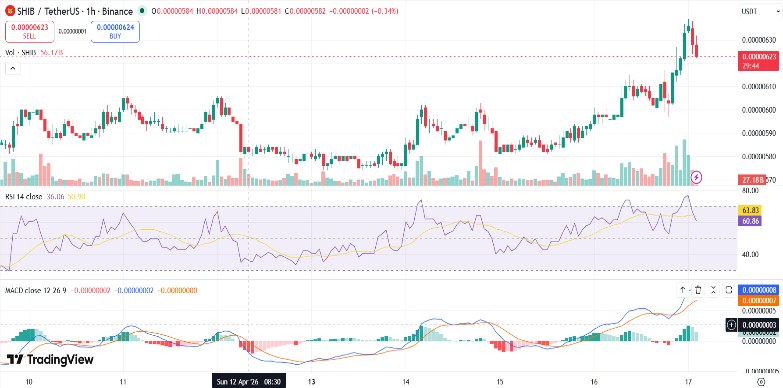 Vào ngày 16 tháng 4, giá của Shiba Inu ( SHIB ) đã tăng khoảng 6,92% trong 24 giờ qua, đưa giá trị của nó từ 0,000005935 lên 0,000006338, theo CoinMarketCap . Hiện tại, tiền điện tử này có vốn hóa thị trường khoảng 3,75 tỷ đô la với khối lượng giao dịch hàng ngày khoảng 175,41 triệu đô la.