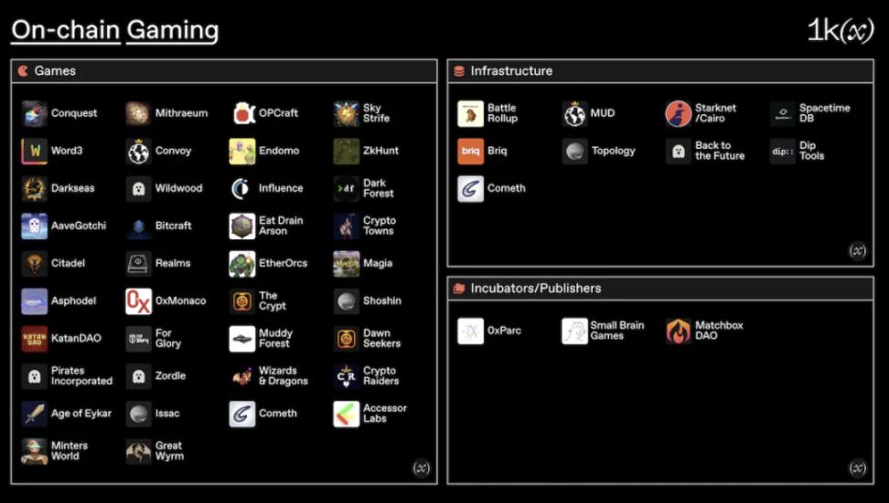 Khi chúng tôi tiếp tục thử nghiệm trò chơi on-chain, chúng tôi khám phá những trải nghiệm mới được hỗ trợ bởi tài sản on-chain, trạng thái và logic trò chơi, mở rộng không cần cấp phép và khả năng kết hợp đưa chúng tôi đến thế hệ tiếp theo của nền tảng crypto—thế giới tự trị. Ở mức 1kx, chúng tôi tin rằng chúng tôi đang trong quá trình đi từ 0 đến 1 trên thế hệ trò chơi tiếp theo – trò chơi on-chain.