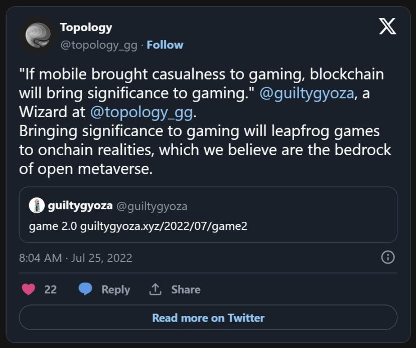 Với mỗi chương thay đổi mới, chúng ta có thể thấy đội ngũ mới thành công bằng cách áp dụng các mô hình và công nghệ mới. Không phải bởi các công ty truyền thống, mà bởi các nhà tư tưởng mới nổi—các nhà thiết kế trò chơi có thể mang lại trải nghiệm mới cho người dùng bằng cách tận dụng các khả năng mới được cung cấp bởi mỗi phương tiện điện toán. Điều này cũng đang xảy ra với những người tiên phong tích cực trong lĩnh vực chơi game Web3, mỗi người đều đổi mới theo cách riêng của mình.