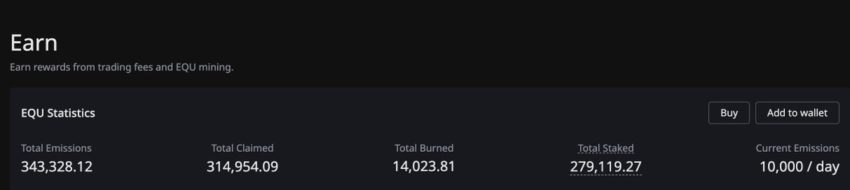 Phương trình là một dự án hợp đồng vĩnh phi tập trung trên Arbitrum , với số lượng lưu hành là 10 triệu và lượng lưu thông 10.000 EQUI + 10.000 EKU bổ sung được phát hành hàng ngày. 10.000 EQU bổ sung được phát hành hàng ngày sẽ được phân bổ đầy đủ cho người dùng tham gia.
