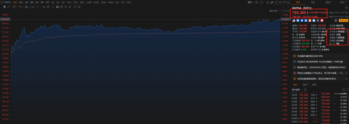 Và kiểu tăng trưởng này đã được thể hiện ở cổ phiếu Nvidia ngày hôm qua. Cổ phiếu Nvidia sắp phá mốc 2 nghìn tỷ USD. Vào tháng 10 năm 2022, giá cổ phiếu của nó thấp tới 108 đô la Mỹ và giá trị vốn hóa thị trường chỉ là 270 tỷ đô la Mỹ, trong hơn một năm, tăng trưởng 7,2 lần.