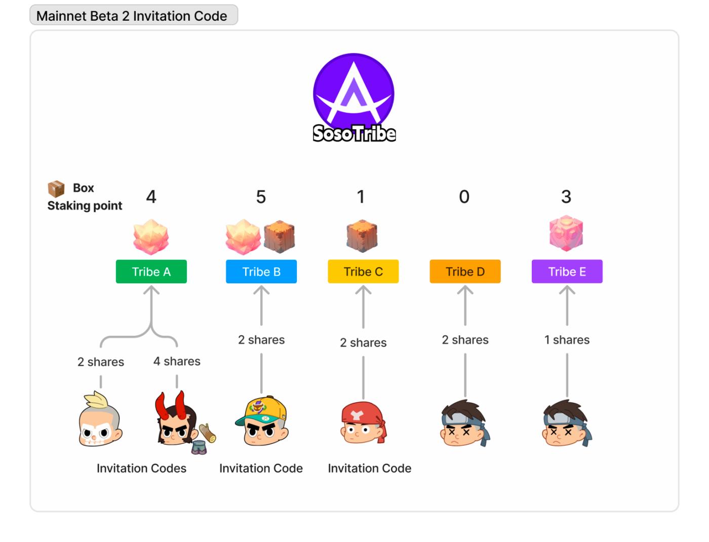 Theo thông tin tài liệu chính thức , bạn cần nắm giữ ít nhất 2 cổ phần của "bộ lạc hợp lệ" để tư cách gia trải nghiệm thứ hai của mainnet . Trong đó, "bộ lạc hợp lệ" dùng để chỉ chủ sở hữu bộ lạc nắm giữ ít nhất 1 điểm của Hộp Bí ẩn Sáng tạo, như trong hình Hãy truy cập @sosotribe_bot, nhấn"Khám phá" và tìm các bộ lạc khác nhau. Khi bạn tìm thấy dấu "hộp nhỏ" theo sau là các số lớn hơn 0, chúng đều là "bộ lạc hợp lệ". Nếu số đó là 4, điểm hộp cam kết của chủ bộ lạc là 4.