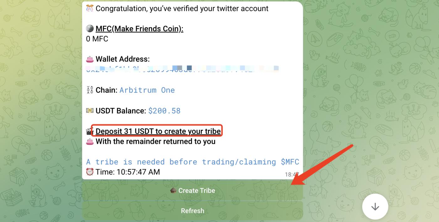2. Chi một lượng USDT nhất định để tạo một bộ lạc. Như trong hình, phí tạo hiện tại là 30 USDT;