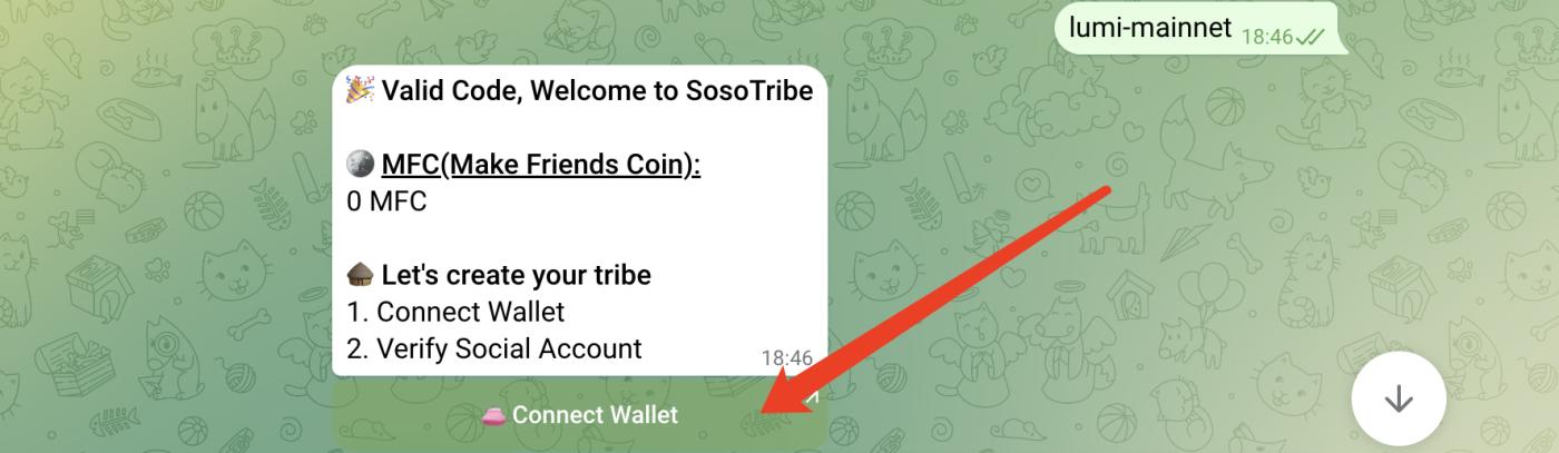 Lúc này, ví Natri đã được liên kết với tài khoản Telegram của bạn, tiếp theo, bạn cần tạo bộ phận Sosotribe để tham gia vòng kiểm tra tư cách lần 2. Các bước cụ thể như sau: