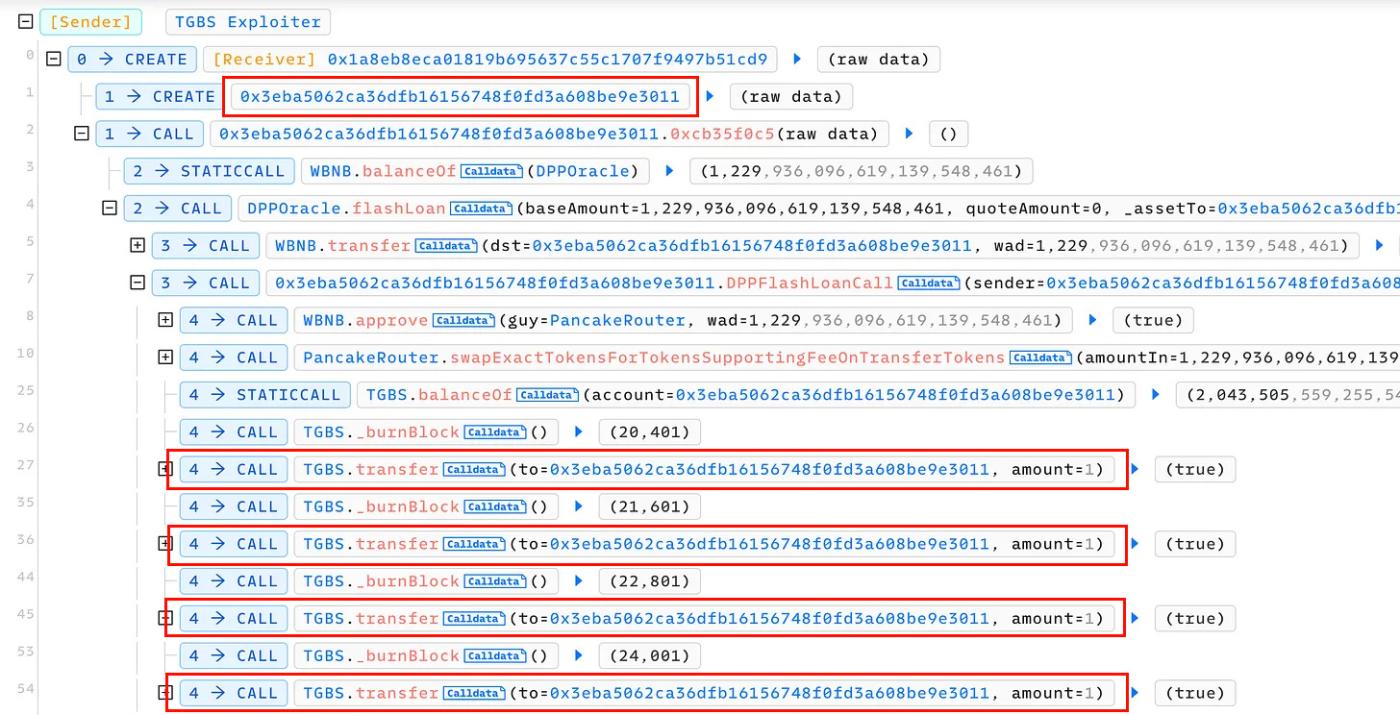 Token TGBS đã bị khai thác và cặp Token đã bị cạn kiệt do lỗ hổng trong hợp đồng Token TGBS, cho phép đốt số dư Token TGBS trong cặp. Tổng giá trị ước tính của số tiền khai thác được là khoảng 150.000 USD.