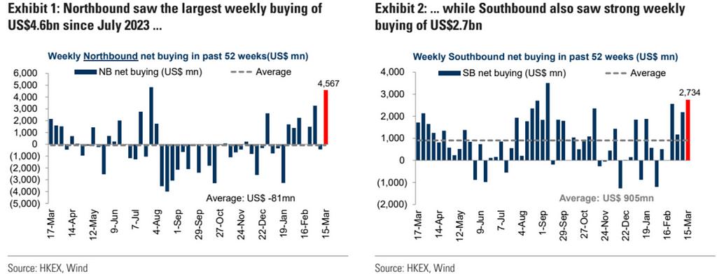Tuy nhiên, dòng vốn Bắc-Nam đạt mức cao mới và vẫn hoạt động. Đánh giá từ việc phân tích dữ liệu, vị thế giữ giao dịch đã thay đổi đáng kể, gần đây HSBC chủ yếu tăng vị thế giữ, các ngân hàng đầu tư châu Âu và Mỹ không thay đổi nhiều, và một số như UBS và Goldman Sachs đã giảm lượng nắm giữ. Đánh giá từ hoạt động của thị trường, các lĩnh vực như bất động sản, tiêu dùng tùy chọn, truyền thông và giải trí có mức tăng lớn đã tăng mạnh, phản ánh một số đặc điểm nhất định của hoạt động bán khống và bù đắp. Ngoài ra, sự gia tăng tỷ trọng của cổ phiếu A trong chỉ số FTSE, có hiệu lực vào thứ Sáu, có thể mang lại hàng chục triệu đô la cho dòng vốn thụ động, đây là một lý do khác cho dòng vốn lớn Bắc-Nam.
